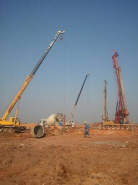該工程巖層大部分為泥巖,巖層長時間浸水會軟化,承載力降低,為保證樁端承載力,成孔后必須加快鋼筋籠安放、導(dǎo)管下設(shè)施工速度,縮短巖層浸水時間。需要鋼筋籠、施工設(shè)備提前就位加速施工。