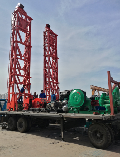 6、鉆機(jī)采用模塊化結(jié)構(gòu)設(shè)計(jì),具有可獨(dú)立使用的轉(zhuǎn)盤部分、變速箱卷?yè)P(yáng)部分、動(dòng)力部分、泥漿循環(huán)系統(tǒng)、拖車部分、鉆塔部分。具有配套齊全、結(jié)構(gòu)緊湊的設(shè)計(jì)特色。該鉆機(jī)于2014年3月19日獲得國(guó)家實(shí)用新型專利,2015年2月13日獲得河北省建設(shè)行業(yè)科學(xué)技術(shù)進(jìn)步一等獎(jiǎng),并獲得河北省科學(xué)技術(shù)進(jìn)步獎(jiǎng)三等獎(jiǎng)。