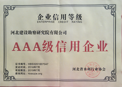 近日,公司被河北省水利行業(yè)協(xié)會評為AAA級信用企業(yè)。