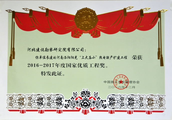 近日,由中國施工企業(yè)管理協(xié)會組織的2016-2017年度第一批國家優(yōu)質(zhì)工程獎評審會在北京隆重召開。國家工程建設(shè)質(zhì)量獎評審組聽取了2016-2017年度第一批國家優(yōu)質(zhì)工程獎評審工作報告和專家組長對參評項目復(fù)查情況的匯報,對參評項目進行了綜合評議、質(zhì)詢答辯和記名投票,確定了2016-2017年度第一批國家優(yōu)質(zhì)工程獎候選項目。我公司參建的新疆華電喀什熱電有限責(zé)任公司的2X350MW熱電聯(lián)產(chǎn)工程、河南洛陽陽光“上大壓小”熱電聯(lián)產(chǎn)熱電工程最終通過評審榮獲了國家優(yōu)質(zhì)工程獎。