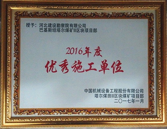 1月19日,巴基斯坦塔爾煤礦總承包方CMEC舉行2016年度優(yōu)秀集體及先進(jìn)個人表彰大會,我公司疏干井項目部榮獲CMEC煤礦優(yōu)秀施工項目部稱號,鄭聚印等三人及一名巴籍員工獲得優(yōu)秀先進(jìn)個人稱號。CMEC塔爾煤礦項目總經(jīng)理高度贊揚(yáng)了我公司不畏艱辛,排除萬難,按期完成疏干井施工工作,給下一步煤礦投產(chǎn)奠定了基礎(chǔ)。同時,希望我公司繼續(xù)發(fā)揚(yáng)苦干快干的精神,如期完成疏干井排水管道的施工任務(wù)。
