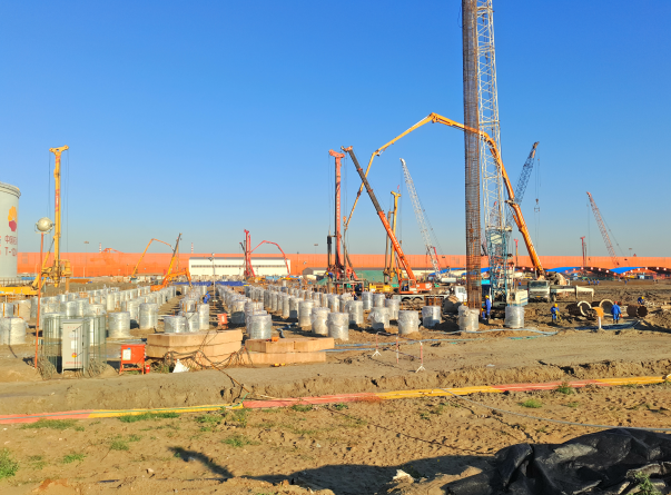 該工程于2017年8月25日開工,截止2017年11月14日完成全部施工任務。共完成高承臺鉆孔灌注樁720根,直徑1200mm,理論方量56904.6m3,土方開挖及碎石回填 43610 m3。