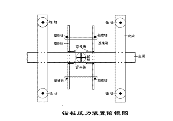 錨樁反力裝置就是將被測樁周圍對稱的幾根錨樁用錨筋與反力架連接起來,依靠樁頂?shù)那Ы镯攲⒎戳茼斊?,由被連接的錨樁提供反力,提供反力的大小由錨樁數(shù)量,反力架強(qiáng)度和被連接錨樁的抗拔力決定。錨樁反力裝置一般不會受現(xiàn)場條件和加載噸位數(shù)的限制,當(dāng)條件允許,采用工程樁作錨樁是最經(jīng)濟(jì)的。