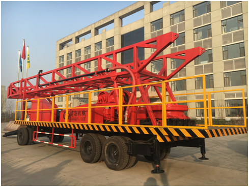 5、鉆機(jī)配套半掛式牽引車,堅(jiān)固耐用,越野性強(qiáng)。鉆塔起落和鉆機(jī)調(diào)平均采用液壓系統(tǒng)控制,起落平穩(wěn),調(diào)平快捷。