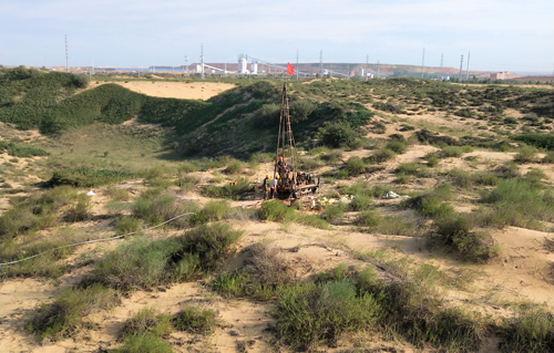 擬建場地位于陜北黃土高原北緣與毛烏素沙漠東南緣的接壤地帶,上部地層為風積沙,下部為侏羅系延安組砂質泥巖和砂巖。初步查明風積砂層的厚度及其物理力學性質,查明下部基巖的埋深,及初步查明地下水的埋藏條件、地下水類型、補給排泄條件,調(diào)查其變化幅度是本工程的關鍵點和重點。