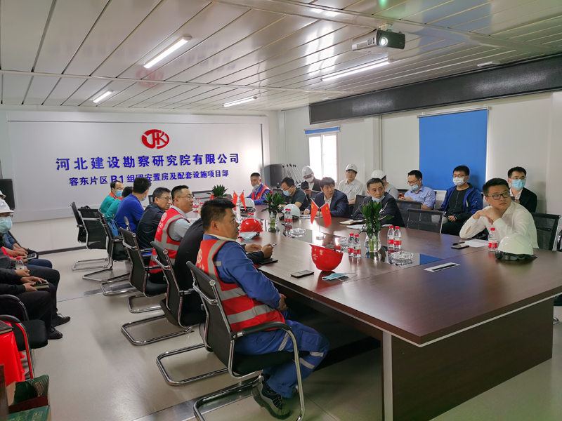 在B1組團(tuán)項(xiàng)目部,劉中林總經(jīng)理一行聽取了項(xiàng)目部的工作匯報(bào),項(xiàng)目經(jīng)理夏文超介紹了目前施工進(jìn)展情況、下一步工作計(jì)劃、以及保證工期目標(biāo)的措施。劉中林總經(jīng)理對我項(xiàng)目部的工作給予了充分肯定,相信河北建勘一定能干好這個(gè)項(xiàng)目,并贊揚(yáng)夏經(jīng)理工作思路清晰、安排合理。劉中林總經(jīng)理要求,安置房項(xiàng)目是關(guān)系民生大計(jì)的工程,一定要確保按期完成,讓搬遷的老百姓按時(shí)入住。他還強(qiáng)調(diào)指出,馬上進(jìn)入北方的汛期,項(xiàng)目部一定要做好防汛工作,確保安全度汛。城市發(fā)展投資公司總經(jīng)理秦文龍指出:施工中出現(xiàn)的各種問題一定要及時(shí)進(jìn)行反饋報(bào)告,城發(fā)公司將全力解決協(xié)調(diào),全力確保項(xiàng)目的順利實(shí)施。