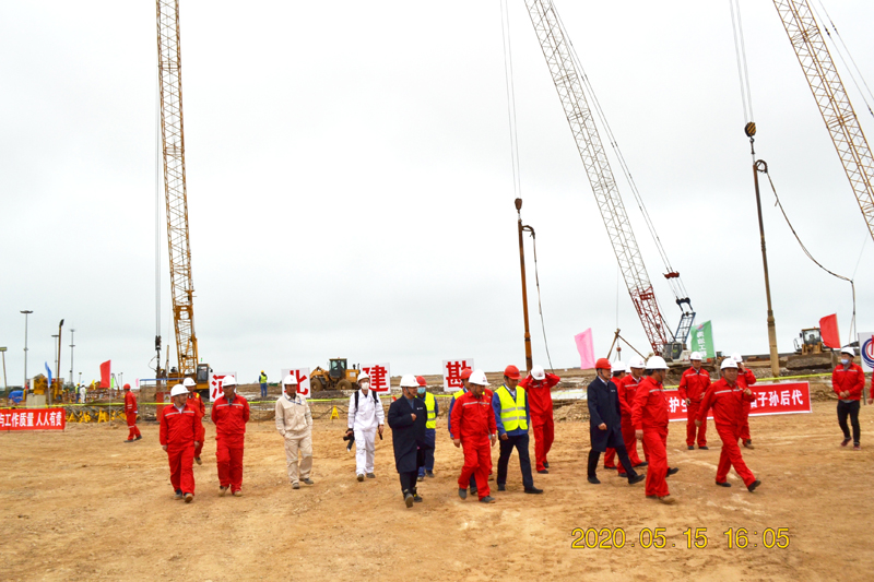 2020年5月15日下午,國家管網(wǎng)集團(tuán)副總經(jīng)理姜昌亮帶隊,國家管網(wǎng)集團(tuán)、總包海工集團(tuán)有關(guān)領(lǐng)導(dǎo)一行,來到我公司龍口南山LNG一期工程接收站工程施工現(xiàn)場進(jìn)行觀摩考察,巖土工程公司李友東經(jīng)理、劉帥副經(jīng)理和項目經(jīng)理李亮親自迎接,并與國家管網(wǎng)姜昌亮副總經(jīng)理、中海油LNG董事長王曉剛親切交談,介紹了現(xiàn)場施工情況。姜昌亮副總經(jīng)理、王曉剛董事長對我公司給予了高度評價和充分肯定,相信河北建勘一定能干好這個項目,并希望可以長期合作。
