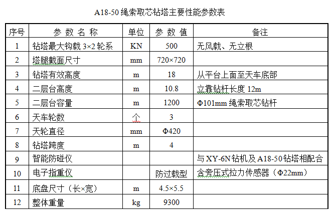 1、A18-50繩索取芯鉆塔設計、制造依據(jù)“先進、可靠、安全、經(jīng)濟、實用”的原則,可滿足繩索取芯鉆井工藝要求,符合施工現(xiàn)場HSE規(guī)范。