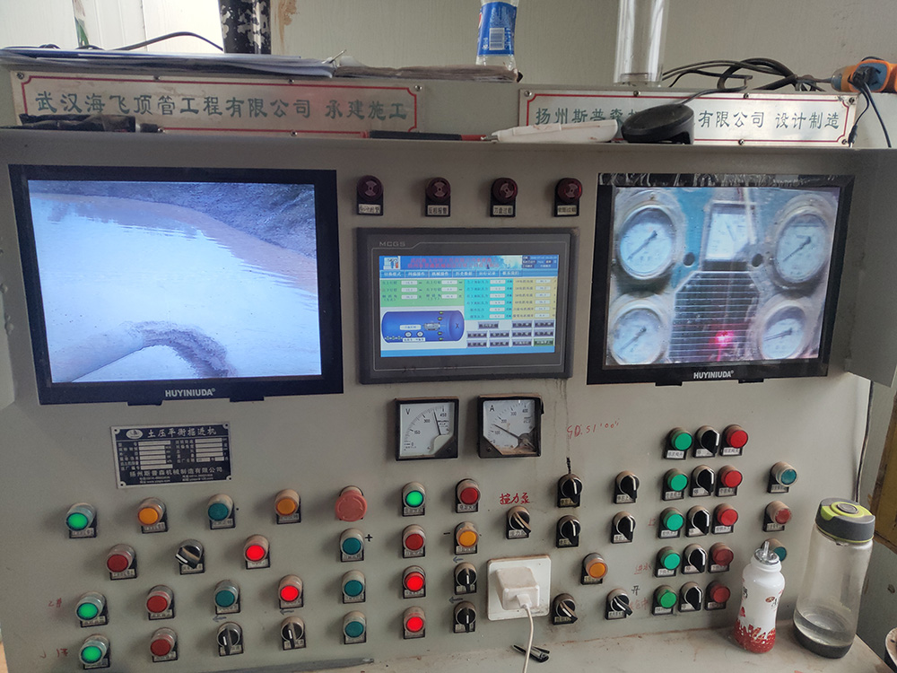 頂進(jìn)用工作井頂進(jìn)設(shè)備進(jìn)行速度控制,分為兩個部分,機(jī)頭入洞階段要嚴(yán)格控制速度,此階段重點(diǎn)是找正管子中心、高程,偏差控制在±5mm之內(nèi),所以速度不要太快。