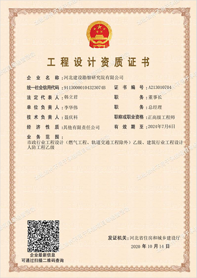 公司于2020年10月27日取得了建筑行業(yè)(人防工程)工程設(shè)計(jì)乙級資質(zhì)證書,可承擔(dān)(1)建設(shè)規(guī)模在1000萬元以下的各級人防工程設(shè)計(jì)項(xiàng)目;(2)建設(shè)規(guī)模在2000萬元以下的醫(yī)療救護(hù)工程、防空專業(yè)隊(duì)工程、人員掩蔽工程、人防配套工程設(shè)計(jì)項(xiàng)目。