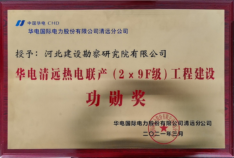 我公司榮獲華電清遠(yuǎn)熱電聯(lián)產(chǎn)(2×9F級(jí))工程建設(shè)功勛獎(jiǎng)
