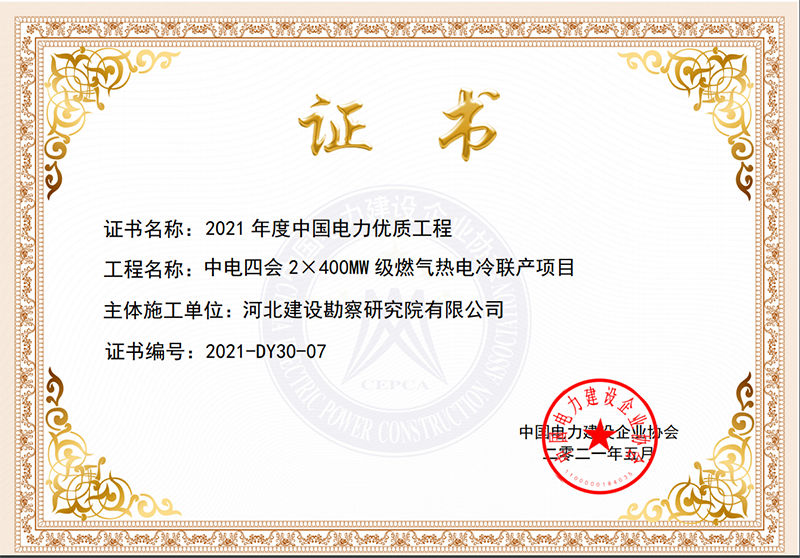 近日,中國(guó)電力建設(shè)企業(yè)協(xié)會(huì)公布了2021年度中國(guó)電力優(yōu)質(zhì)工程評(píng)審結(jié)果,我公司作為中電四會(huì)2×400MW級(jí)燃?xì)鉄犭娎渎?lián)產(chǎn)項(xiàng)目主體施工單位,榮獲2021年度中國(guó)電力行業(yè)優(yōu)質(zhì)工程獎(jiǎng)。