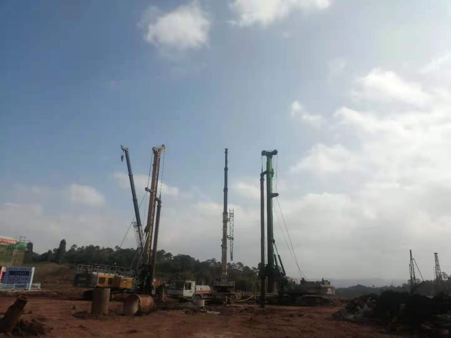 本工程于2020年09月28日開工,至2021年2月3日完工,歷時(shí)129天,保質(zhì)、保量、安全完成全部施工任務(wù)。在施工過程中,根據(jù)勘察報(bào)告及超前鉆報(bào)告,樁基施工存在較多溶洞;同時(shí)根據(jù)施工圖紙要求,承臺(tái)樁樁長(zhǎng)差不能超過樁間距,最小樁長(zhǎng)6米,地質(zhì)情況特殊,個(gè)別孔需施工巖層2~10米,施工難度大。針對(duì)工程特點(diǎn),采用了帶合金條、合金豆等多種截齒進(jìn)行施工,較高效率的完成了施工任務(wù),保證了工程質(zhì)量,并確保無任何安全生產(chǎn)等事故。