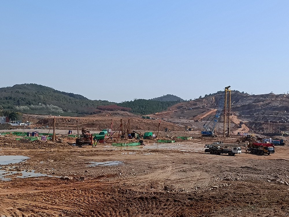 本工程工作內(nèi)容主要包括測(cè)量放線、鉆孔灌注樁旋挖成孔、鋼筋籠制作及安放、砼灌注、鉆渣外運(yùn)、強(qiáng)夯施工等。于2021年03月11日開工,7月15日完工,歷時(shí)126天,滿足招標(biāo)方的節(jié)點(diǎn)工期和總工期要求。