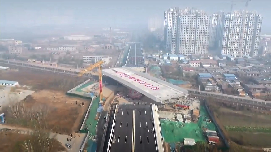 由我公司監(jiān)控監(jiān)測的辛集市教育路跨石德鐵路立交橋轉(zhuǎn)體成功