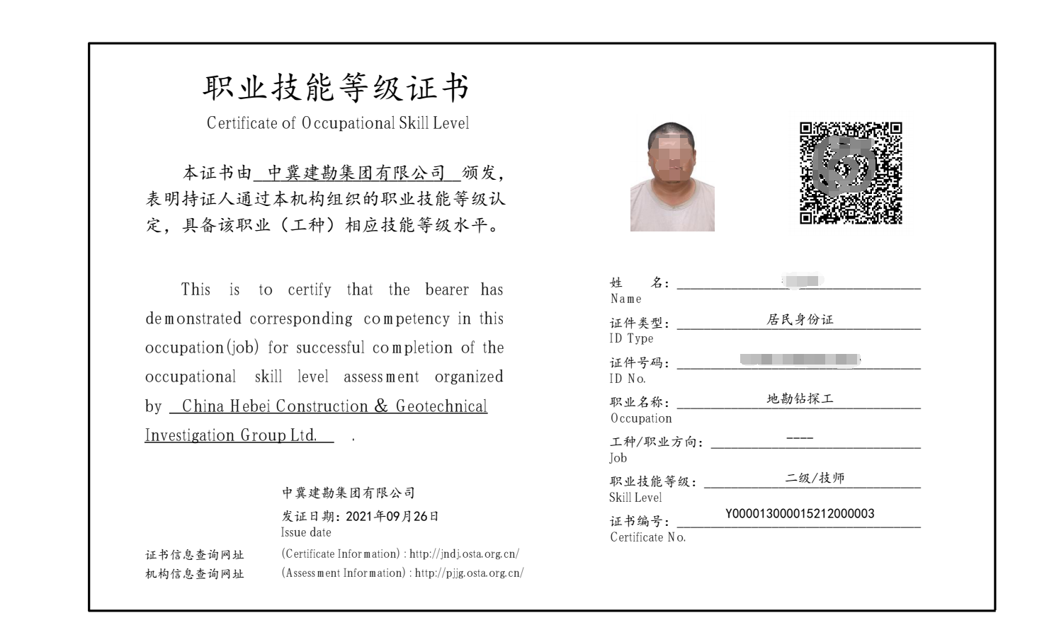 根據(jù)《國家職業(yè)技能標準》,公司按照取得的職業(yè)技能等級認定范圍,結(jié)合公司制度及內(nèi)部認定的工人技術等級情況,制定了《中冀建勘集團有限公司職業(yè)技能等級套改方案》,組織開展了334名技術工人職業(yè)技能等級認定工作,取得了職業(yè)技能等級證書。同時,根據(jù)政府相關政策,申請取得了相應的補助資金。