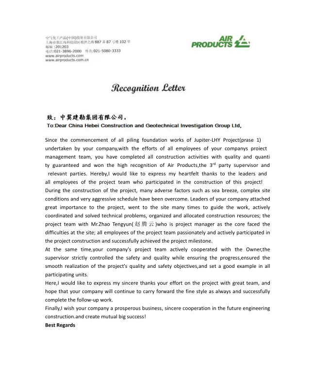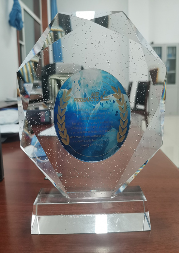 近日,我公司承建的空氣化工產(chǎn)品(浙江)有限公司海鹽氫能源和工業(yè)氣體綜合項(xiàng)目一期工程,收到業(yè)主頒發(fā)的“達(dá)到400000安全人工時(shí)”優(yōu)秀團(tuán)隊(duì)獎(jiǎng)杯和表揚(yáng)信。