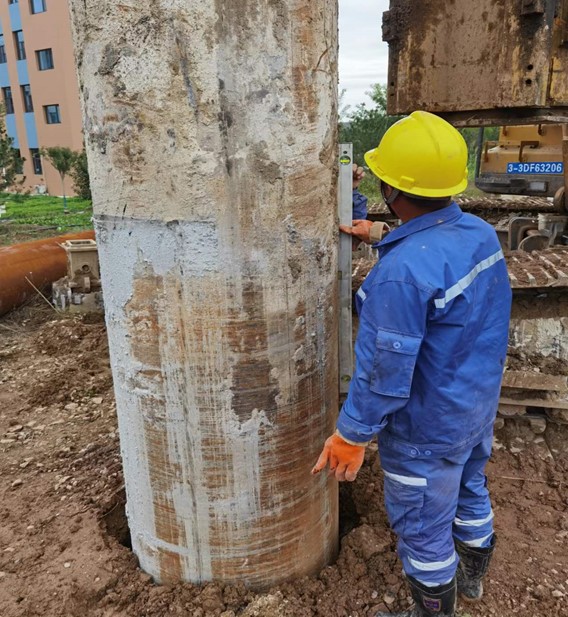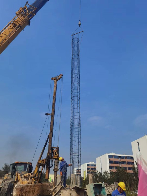 本項目位于河北邯鄲永年縣,受河北永洋特鋼集團有限公司委托,我公司承擔本項目樁基施工?;A采用混凝土灌注樁,工程內容為全套管旋挖機械成孔、清運余土(渣土)、鋼筋籠制作及安放、混凝土澆筑、鑿樁頭、清運及場地平整。工作量為樁徑800mm混凝土灌注樁174根。