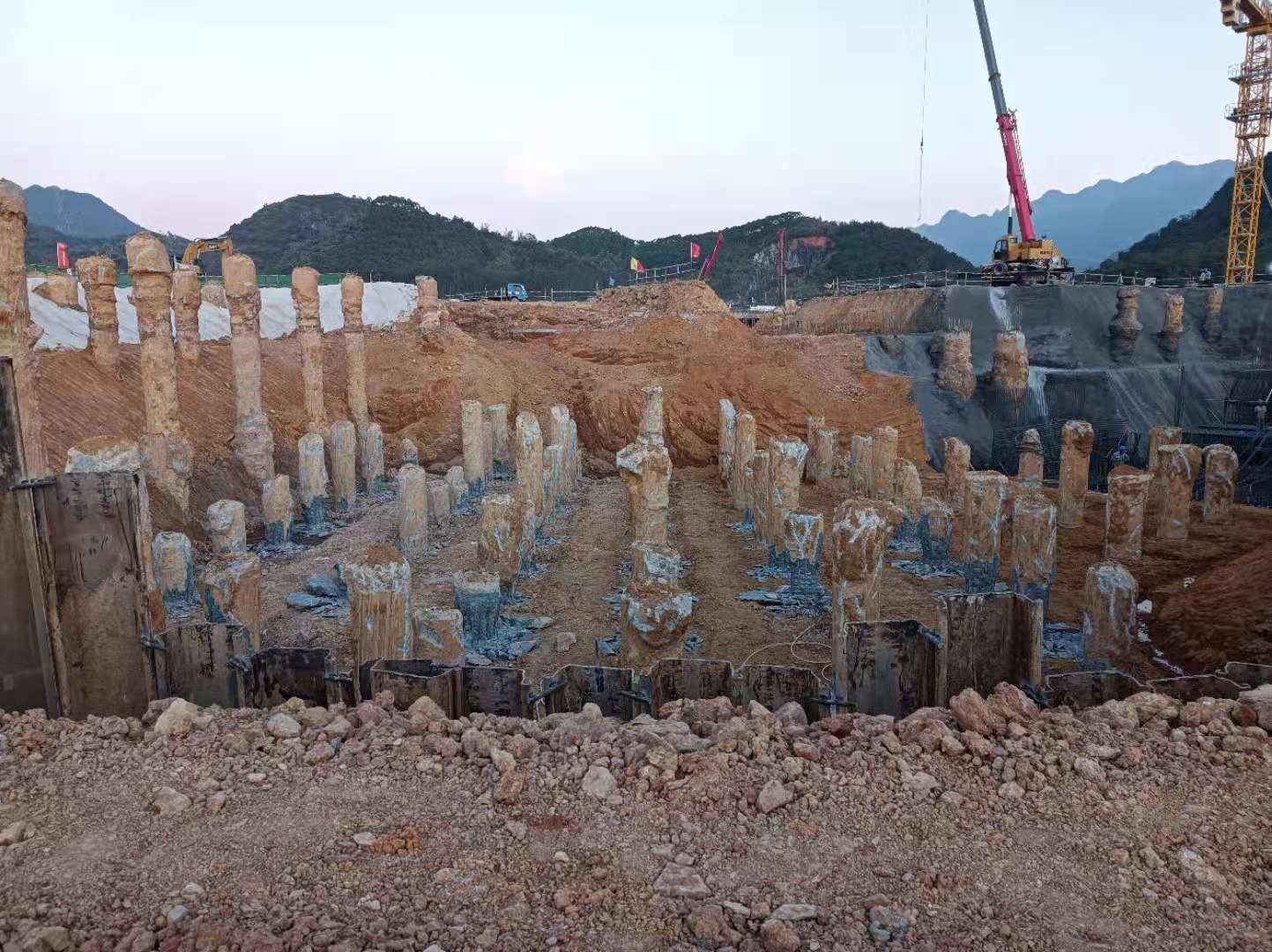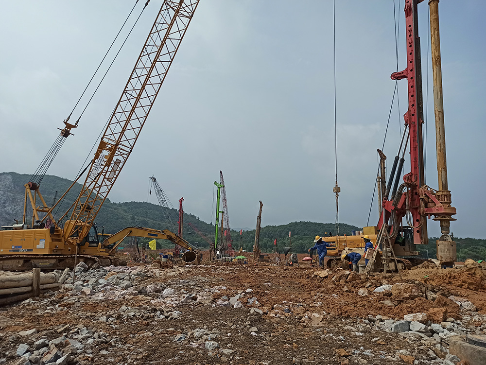 本工程于2021年04月10日開工,2022年01月27日現(xiàn)場樁基施工完工,工程施工期間累計投入施工人員200余人和大功率旋挖鉆機(jī)10臺以及相關(guān)匹配的機(jī)械設(shè)備??朔擞昙尽⒏邷睾偷刭|(zhì)條件復(fù)雜等諸多不利因素,累計完成鉆孔灌注樁1857根,處理溶洞約31000m³(含回填片石、水泥、C20砼及注漿和遇溶洞樁超灌混土量)。