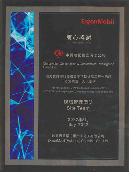 惠州美孚乙烯一期項(xiàng)目樁基工程榮獲“優(yōu)秀管理團(tuán)隊(duì)”榮譽(yù)稱號(hào)