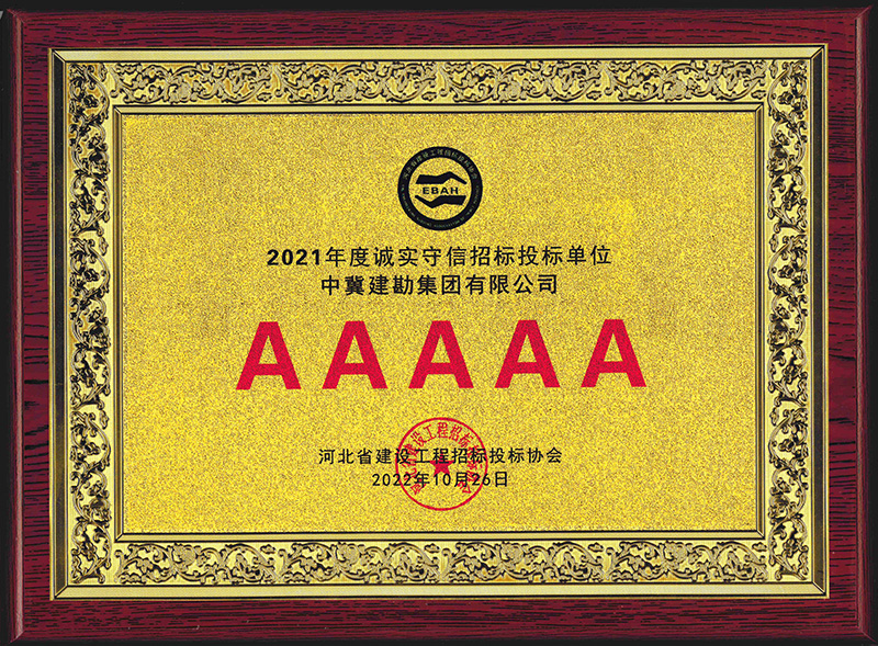 近日,我公司被河北省建設(shè)工程招標(biāo)投標(biāo)協(xié)會(huì)評(píng)為2021年度河北省建設(shè)工程招標(biāo)投標(biāo)誠實(shí)守信5A級(jí)施工企業(yè)。