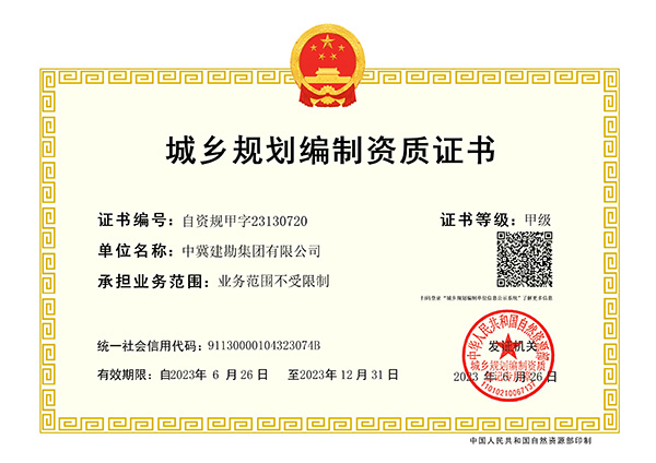 經(jīng)過10個月的精心準備和實施,集團公司于2023年6月26日通過了自然資源部城鄉(xiāng)規(guī)劃編制單位資質(zhì)審查,喜獲城鄉(xiāng)規(guī)劃編制單位甲級資質(zhì)。城鄉(xiāng)規(guī)劃編制單位甲級資質(zhì)是規(guī)劃行業(yè)的最高資質(zhì)等級,該資質(zhì)的取得將有力促進公司城鄉(xiāng)規(guī)劃編制業(yè)務(wù)開展,對公司轉(zhuǎn)型升級、地方市場開拓將起到重要作用,為公司持續(xù)穩(wěn)定發(fā)展奠定更加堅實的基礎(chǔ)。