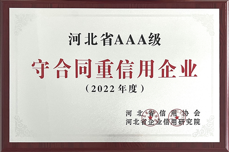 根據(jù)河北省信用辦、河北省信用協(xié)會(huì)等七部門印發(fā)的《關(guān)于開(kāi)展“推進(jìn)誠(chéng)信建設(shè)共建信用河北”的活動(dòng)方案》的通知,以及河北省信用協(xié)會(huì)、河北省企業(yè)信用研究院印發(fā)的《關(guān)于2022年度“河北省守合同重信用”企業(yè)申報(bào)認(rèn)定工作的通知》,我公司被評(píng)為“河北省AAA級(jí)守合同重信用企業(yè)”。