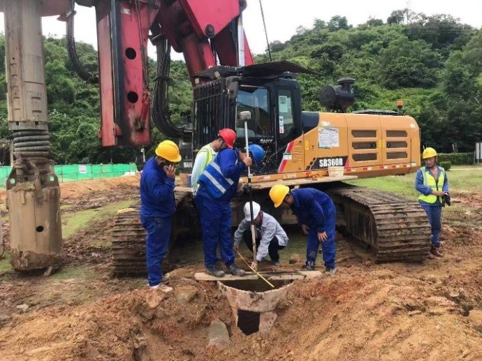 在進(jìn)行GIS區(qū)域樁基施工過(guò)程中,發(fā)現(xiàn)該施工區(qū)域的地下管線(xiàn)走向及位置與建設(shè)單位提供的竣工圖不符。項(xiàng)目部積極與設(shè)計(jì)、監(jiān)理、業(yè)主等單位協(xié)調(diào)溝通,采用人工挖探坑、金屬探測(cè)儀等方式探明地下管線(xiàn),在保證施工進(jìn)度的同時(shí)也避免了因地下管線(xiàn)問(wèn)題造成的施工事故。