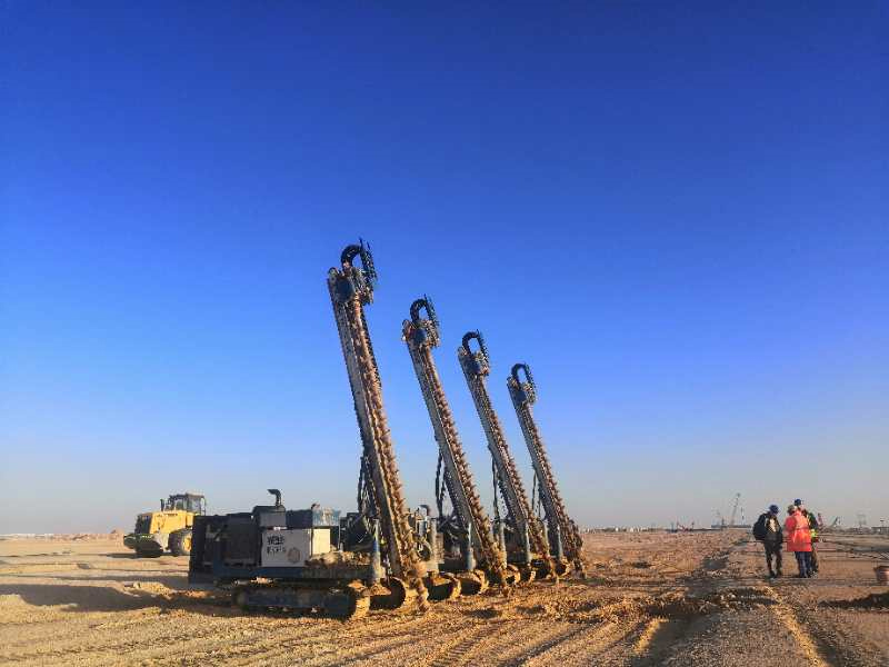 Dhafra PV2太陽能電站工程位于阿聯(lián)酋阿布扎比,由Dhafrah PV2 Energy Company LLC投資建設(shè)。工程共計(jì)完成直徑為300mm的H型鋼樁109504根,直徑為400mm的H型鋼樁34909根,混凝土包裹樁身2.05-2.8m。以及直徑為300mm的清掃機(jī)器人的樁1880根,直徑為450mm的機(jī)器人通訊塔的樁36根。