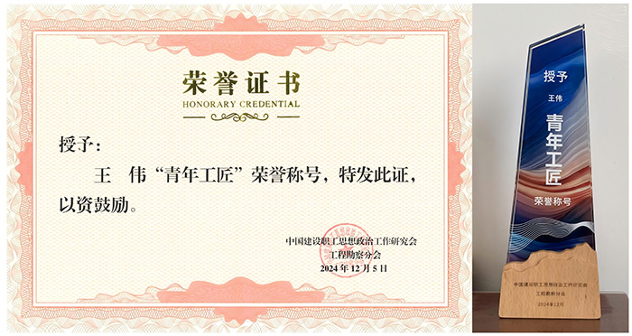 經(jīng)公司積極申報推薦,中國建設(shè)職工思想政治工作研究會工程勘察分會嚴格審核,一公司經(jīng)理王偉同志榮獲“青年工匠”榮譽稱號。