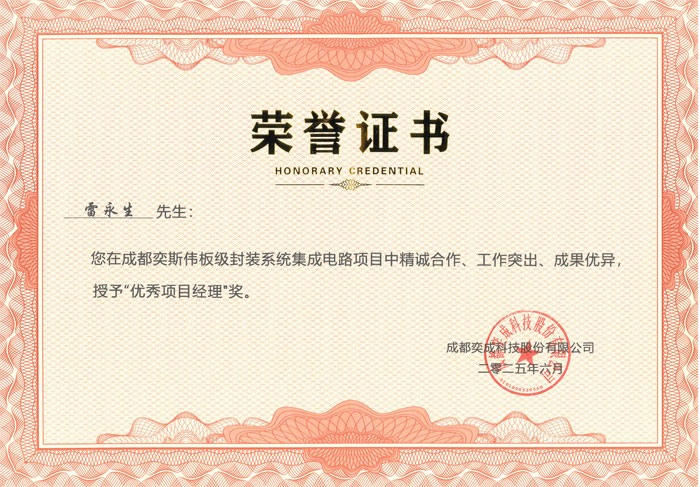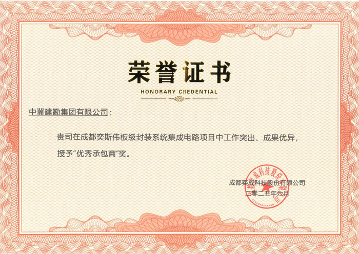同心聚力 共賦“芯”章——集團(tuán)公司獲得成都奕成科技股份有限公司“優(yōu)秀承包商”榮譽(yù)