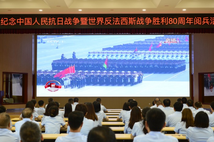 集團(tuán)公司組織職工觀看紀(jì)念抗戰(zhàn)勝利80周年閱兵盛況