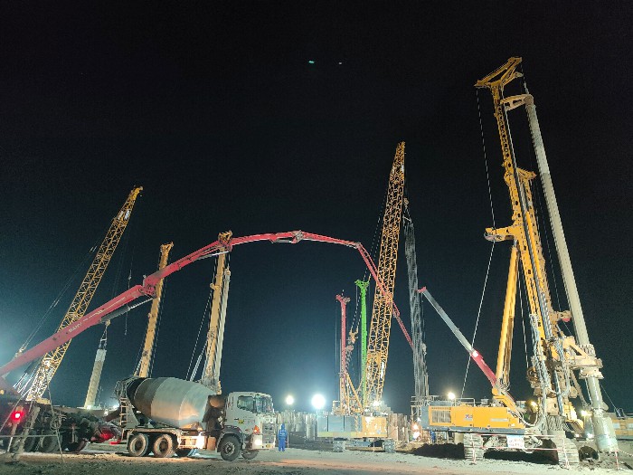 本項目位于福建省福清市,由萬華化學(xué)(福建)碼頭有限公司投資建設(shè),集團(tuán)公司承建了1#乙烯低溫儲罐的全部樁基工程。項目采用高承臺樁基結(jié)合樁柱一體化施工工藝,使用旋挖鉆機成孔,高質(zhì)量完成了全部448根大直徑鋼筋混凝土灌注樁施工,樁徑均為1200毫米。