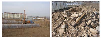 根據(jù)勘察場(chǎng)區(qū)以碎石土為主的特點(diǎn),以鉆探為主,輔以井探、深層平板載荷試驗(yàn)、面波測(cè)試、地微振測(cè)試、孔內(nèi)波速測(cè)試、重型動(dòng)力觸探試驗(yàn)、標(biāo)準(zhǔn)貫入試驗(yàn)等原位測(cè)試手段。在探井內(nèi)采取大體積土樣對(duì)碎石土進(jìn)行準(zhǔn)確定名,采用超重型動(dòng)力觸探、深層平板載荷試驗(yàn)準(zhǔn)確提供碎石土的承載力??辈熘惺状斡妹娌ǚú槊髁苏麄€(gè)場(chǎng)地?zé)o暗藏的河道、溝浜、墓穴,為地基均勻性評(píng)價(jià)及建筑地基基礎(chǔ)方案的科學(xué)選擇奠定了基礎(chǔ)。
