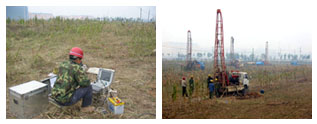 本工程勘察以鉆探為主,輔以扁鏟側(cè)脹試驗(yàn)、靜力觸探試驗(yàn)、標(biāo)準(zhǔn)貫入試驗(yàn)、孔內(nèi)波速測試、地微振測試原位測試手段。根據(jù)場地及建筑物特點(diǎn)進(jìn)行了中壓固結(jié)試驗(yàn)、三軸壓縮試驗(yàn)(UU法)、土的易溶鹽含量試驗(yàn)、滲透試驗(yàn)、顆粒分析試驗(yàn)等,手段齊全。在邯鄲巖土工程勘察中首次采用扁鏟側(cè)脹測試手段,測定了土的靜止側(cè)壓力系數(shù)、側(cè)向基床反力系數(shù)、持力層的承載力特征值。