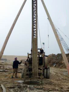 針對上述要求,工程現(xiàn)場采取以下針對措施:①由于花崗巖強(qiáng)度較高,沖擊鉆成孔速度慢,可能對成樁質(zhì)量產(chǎn)生影響。因此結(jié)合以往工程經(jīng)驗(yàn),根據(jù)本工程地層特點(diǎn),制定了比較切合實(shí)際的施工操作參數(shù),提高了成孔施工速度,確保單樁成樁總體時間符合設(shè)計(jì)要求。②現(xiàn)場加工了兩套清孔裝置,有效地提高清孔速度和質(zhì)量,保證了沉渣厚度滿足設(shè)計(jì)要求的不大于5cm。③在沖擊鉆頭焊上取樣器,解決了地層鑒定需要樣品的問題。