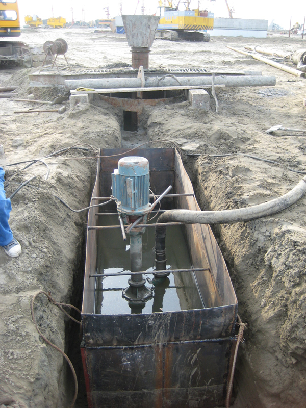 本工程自2008年8月26日開工,至2008年12月30日竣工,采用三岔雙向擠擴(kuò)后壓漿鉆孔灌注樁,砼等級C40,灌注樁樁徑1.4m,2b型地下樁長為58.9m,樁數(shù)為16根;1a、1b、2a、2c型地下樁長為55.3m,樁數(shù)為344根;地上樁長均為1.8m,每根樁三個盤徑2.4m的承力盤,共360根樁,并完成了樁端后壓漿、鑿樁頭及地面接樁工作;振動沉管碎石樁樁徑為0.35m,地下樁長為20m,共完成2181根,碎石墊層12897 m3。